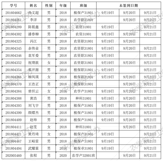 根据疫情防控形势以及集团要求,我院一直实行每日健康打卡制度,在中秋节期间(2021年9月19日-9月21日),经分管辅导员、学工助理、班干部多次提醒,仍有孙文超等21名同学未在规定时间内完成打卡,具体未打卡次数及日期如下: