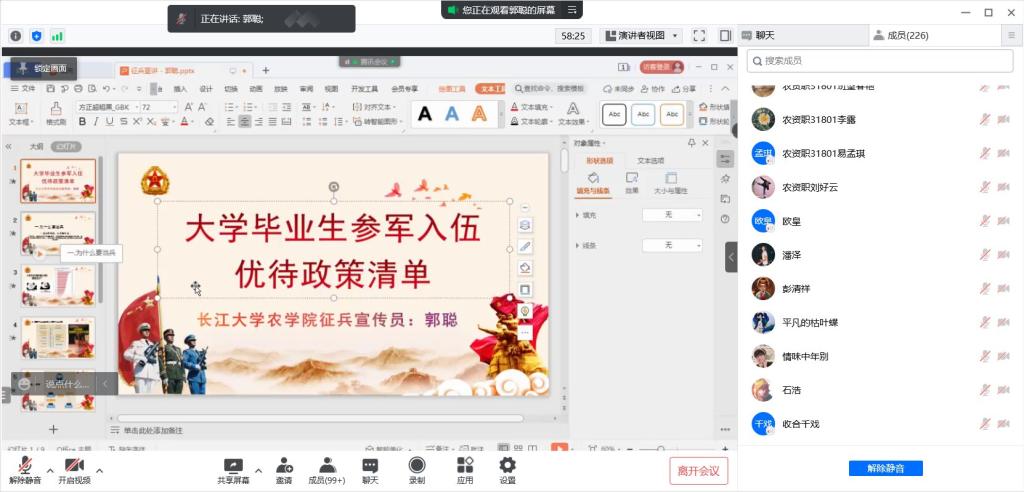 会议最后,尹书记对此次线上征兵活动进行了总结,号召广大学子要有携笔从戎的责任担当,从军报国的价值追求,积极投身火热的军营,书写从军无悔的青春篇章。