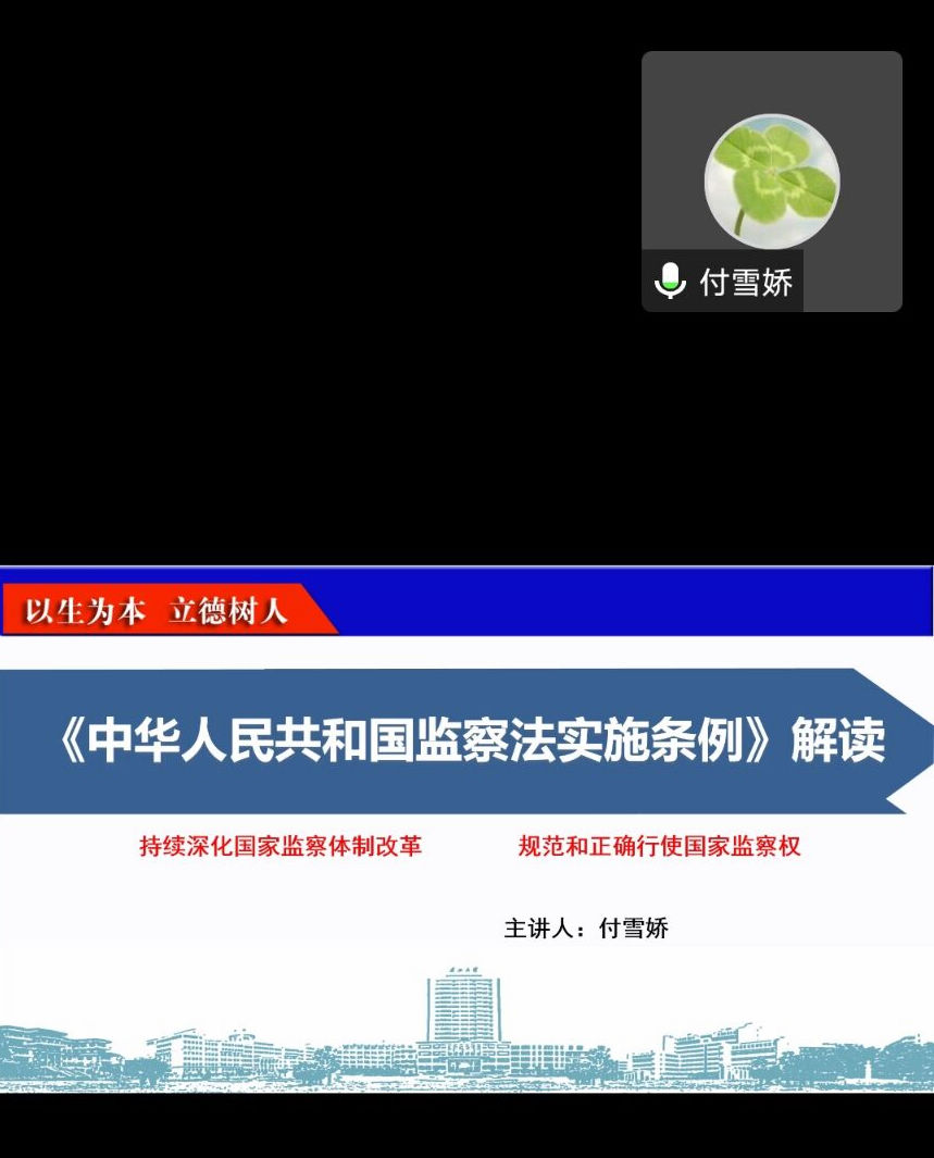 此次学习会使得同学们对《中华人民共和国监察法》、《中华人民共和国公职人员政务处分法》有了较为明确的认知,增强了员工们遵纪守法的观念。必将对优化学校环境,建设平安和谐校园,促进学校思想道德建设,提高公司产品质量,起到积极的推动作用。