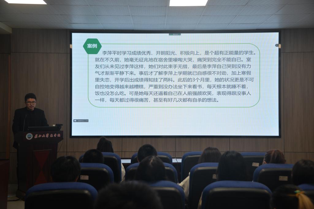 通过此次培训,林老师希望全体新生骨干能够担负起责任,充当起“排雷兵”、“传声员”、“倾听者”、“陪伴者”,为学院全体员工身心健康保驾护航。