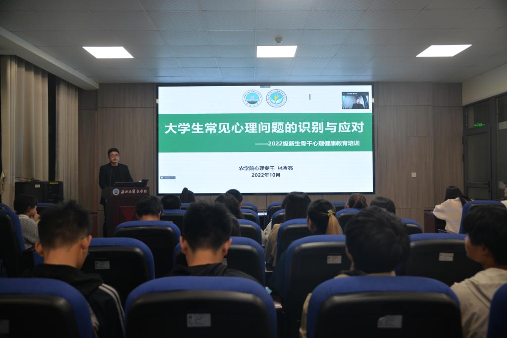 (见习记者 赵鑫达/文 屈敬帅/摄)为帮助新生更好地识别和应对老员工常见心理问题,提高新生对心理健康问题的重视程度,11月8日晚,beat365亚洲体育官方网站在农科大楼3073组织开展2022级新生骨干心理健康教育培训,培训由学院心理专干林香亮老师主讲。