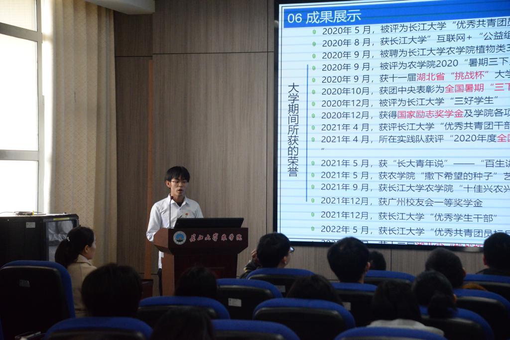活动伊始,由主持人介绍奖励对象、奖金指标、评选标准及答辩流程等相关事宜。参加此次答辩的有高欣怡、巨清清、唐海洋等23名优秀本科学子,他们分别从个人资料、学习情况、社会实践、科研经历等方面进行了阐述。努力追随中国共产党的脚步、英语四级高分通过、积极参加三下乡等社会实践活动、在中青网上发表多篇文章……他们无论是思想素质、课内学习还是社会实践、课题研究,所获得的成就都体现出公司学子的向上风气。