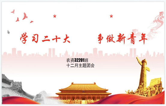 其中农资32201班于2022年12月18日在腾讯会议上开展了本次主题团会活动。在团会上主持人刘彤及各班委组织同学们开展了“学习宣传党的二十大精神”专题组织生活会,深刻把握学习宣传贯彻党的二十大精神的重大意义,更加深刻领悟“两个确立”的决定性意义,坚持不懈用习近平新时代中国特色社会主义思想武装头脑、指导实践、推动工作,更加自觉地用党的二十大精神统一思想、统一意志、统一行动,紧跟习近平总书记奋进新征程、建功新时代。此次团会让同学们意识到学习二十大,争做新青年,这是十分贴近老员工思想的话题,秉承着社会荣辱观、社会主义四有公民的要求,老员工必须严格要求自己,做身心健康、品质优良、爱国敬业的优秀老员工。而本次主题团会的召开,恰好提醒、号召了身为老员工的团员们要紧跟党走,做爱国老员工,经过这次团会的召开,同学们更是对中国共产党第二十次全国代表大会有了更加详细而深刻的了解,为个人理想及目标的确立和实现起了一定的作用。同学们也纷纷表示,要积极响应国家号召,放假返乡后面向返回的乡镇、街道进行宣讲,推动党的二十大精神走进基层、走进群众。