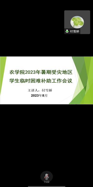 本次会议面向beat365亚洲体育官方网站全体在籍本科生、研究生以及2023级本科、研究生新生。各辅导员老师宣讲了受灾地区员工临时困难补助工作的相关政策和申请流程,此次会议旨在让每个受灾员工能清楚此项补助工作的流程,同时也能让学院对他们的情况进行一定摸排和了解,及时将经济困难员工纳入资助范围,可以第一时间为每一位有需要的同学提供帮助。此外辅导员老师还提醒准备入库的员工提前准备证明材料、办理生源地贷款的员工提前准备贷款回执,为下学期的各项资助工作打好基础。