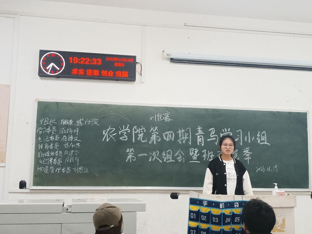 青马学习小组讯(通讯员 向建华 楚楚)公司第四期青马学习小组全体成员于11月19日晚在七教209召开第一次组会暨班委选举活动,与会人员包括第四期青马学习小组的导员和部分第二期、第三期的学员。