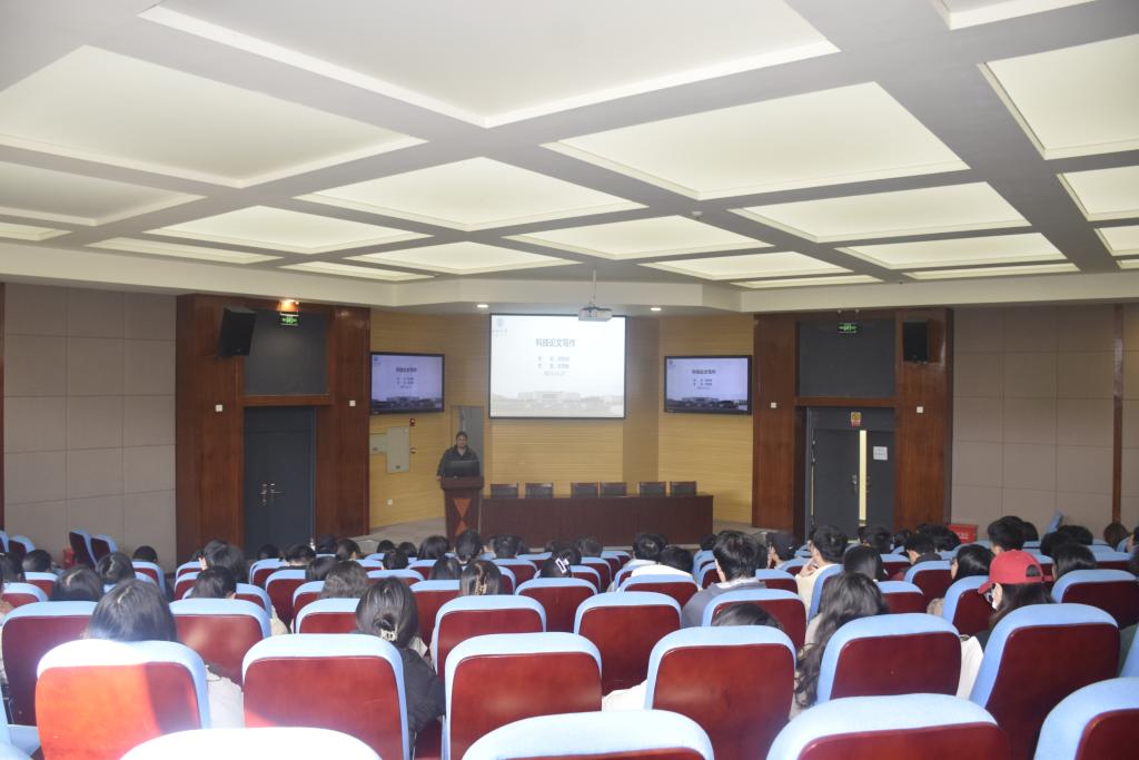 邱先进教授以科技论文写作的基本要素为话题,为同学们解读了科技论文的定义和特点。他强调了科技写作的目标是客观地传递科学知识,鼓励同学们增加文献阅读量。邱先进教授分享了一些科技论文写作的技巧和方法,包括如何选择适当的标题、段落结构、字数、引用和数据处理方法等。他还讲解了如何应对科技论文写作中常见的问题,如如何确定署名问题。
