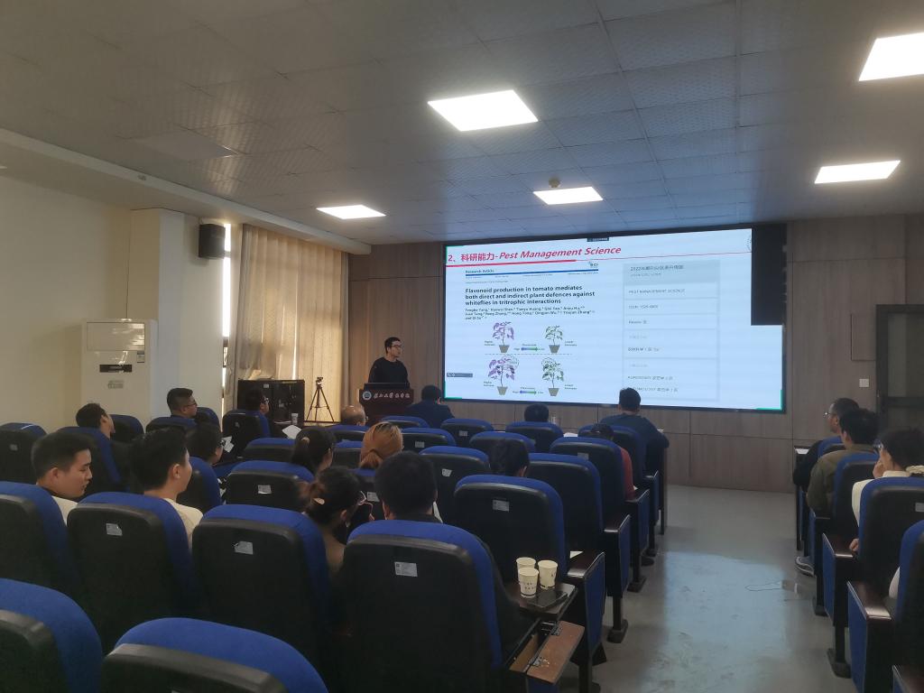 10月23日下午,beat365亚洲体育官方网站在农科大楼3073举行研究生学术沙龙活动。公司党委副书记尹小华、经理助理苏奇出席沙龙。博士研究生代表李於亭、杨冯波,硕士研究生代表胡津瑜、苟亚楠分别进行分享汇报,50余名研究生同学参加了本次学术沙龙。