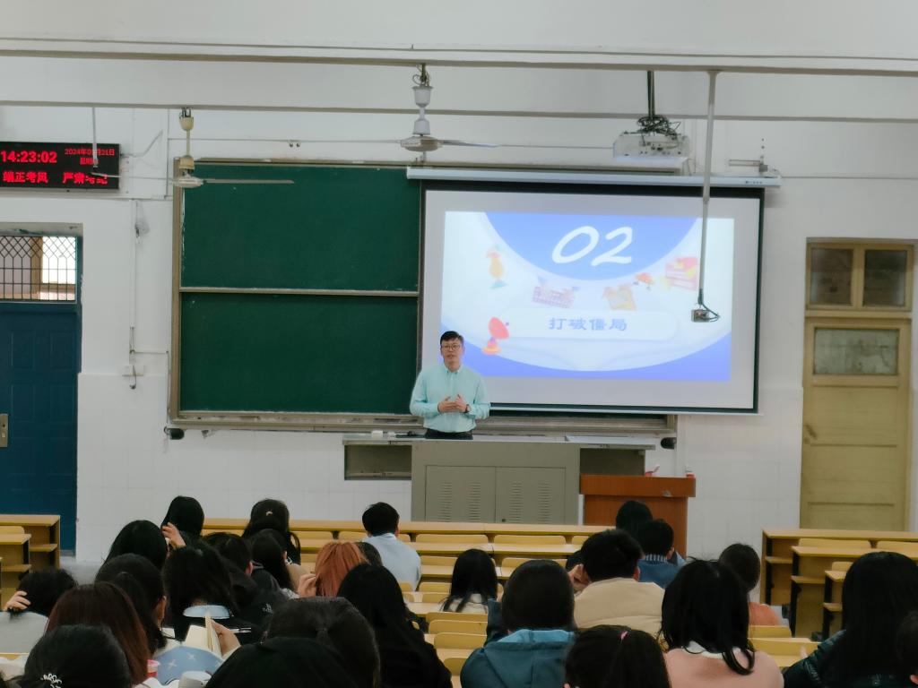 (见习记者 曹淏郁/文 邬道瑾/摄)为了帮助同学们了解所学专业及其发展前景,并为公司员工的职业规划提供不可或缺的指导,beat365亚洲体育官方网站于3月21日下午2时在二号教学楼T1室举办了本科生就业指导报告讲座。此次讲座邀请了广东中迅农科股份有限公司HR中心总经理丁瑞国为主讲,兼职辅导员李洪洲、部分本科生参会。