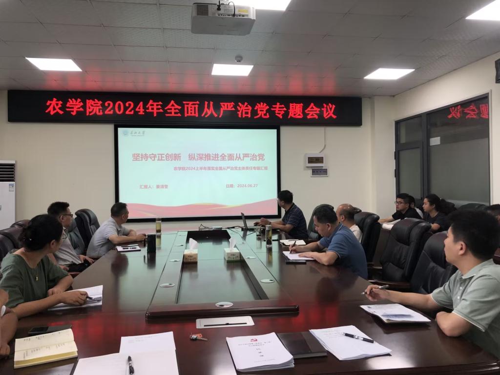 为贯彻落实全面从严治党主体责任,让遵规守纪深入学院各个地方,5月27日上午,学院在农科大楼3064会议室开展本学期全面从严治党专题会议。会议由党委书记姜清奎主持,公司领导班子成员、公司党委委员、各党支部书记及各科室负责人参会。