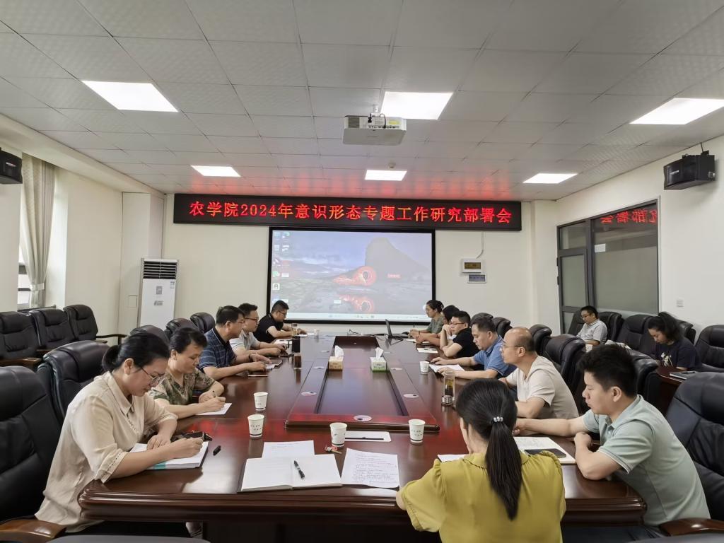 5月23日上午,学院在农科大楼3064会议室召开2024年度上半年意识形态专题工作研究部署会。学院领导班子成员、公司党委委员、各党支部书记及各科室负责人参加会议,会议由党委书记姜清奎主持。
