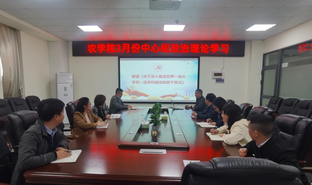 2022年3月30日上午,学院经理李俊凯在农科大楼3064会议室主持召开3月份党委理论学习中心组学习会议。学院领导班子成员、公司党委委员、各党支部书记及各科室负责人参加了学习会。