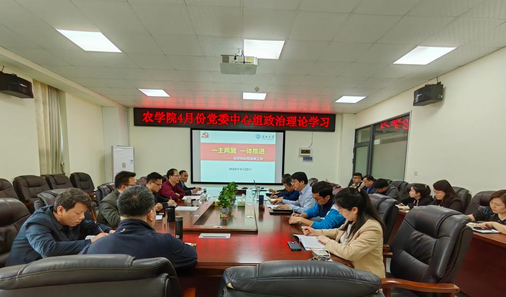 2022年4月22日上午,公司党委书记姜清奎在农科大楼3064会议室主持召开4月份党委理论学习中心组学习会议。校纪委副书记综合室主任陈平中、校纪委综合室副主任陈鹏、院领导班子成员、公司党委委员、各党支部书记及各科室负责人参加了学习会。