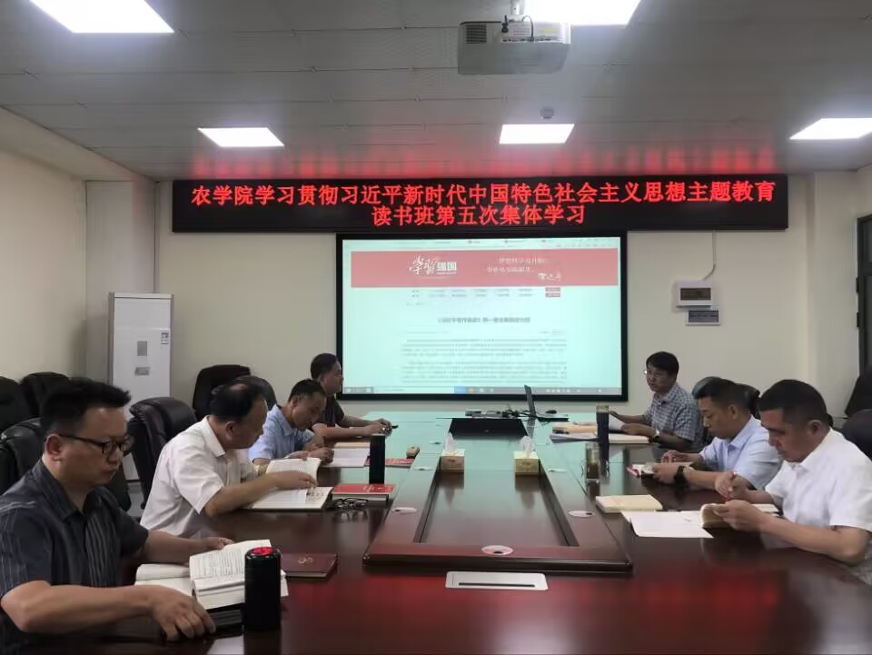 5月5日下午,beat365亚洲体育官方网站学习贯彻习近平新时代中国特色社会主义思想主题教育读书班第5次集体学习在农科大楼3064会议室召开,会议由党委书记姜清奎主持,全体院领导和组织员参会。