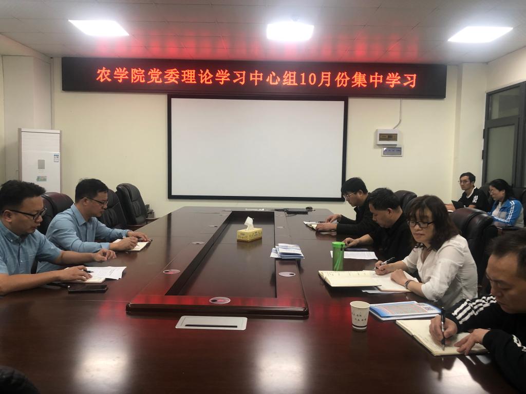 10月24日上午,学院在农科大楼3064会议室召开了10月份党委理论中心组集体学习,学院领导班子成员、公司党委委员、各党支部书记及各科室负责人参加了会议,会议由党委书记姜清奎主持。