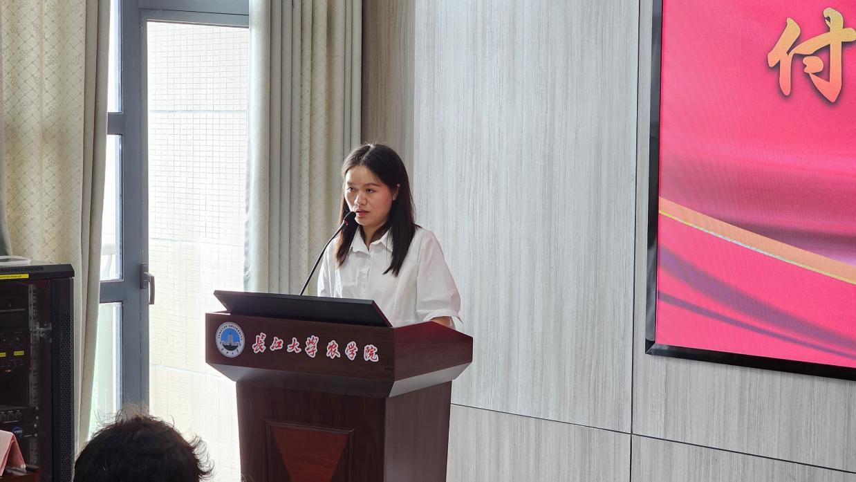 (肖雅萱/文 梁传蔚/摄)为规范发展团员工作,保证新发展的团员质量,提升团员队伍先进性,公司于5月21日12:15在农科大楼3073开展2024上半年候补发展团员答辩。 beat365亚洲体育官方网站员工辅导员付雪娇、员工辅导员唐玉婷、兼职辅导员孙振艳、兼职辅导员李洪洲、员工党员代表曾袁琳珺受邀担任评委参加本次活动。 答辩伊始,主持人袁瑞雪向观众及各候补发展团员介绍了本次答辩的流程与规则。接着,9位候选人按照答辩顺序依次上台向评委和观众们展示自己的答辩内容。此次活动分为自我陈述、评委提问、评委打分三个环节。候选人们在自我陈述过程中围绕自己的思想、入团动机、对团认识等进行简要介绍;在评委提问环节,评委老师根据答辩人的陈述内容提出问题,候选人则进行现场回答。 比赛最后,付雪娇老师对本次活动进行了详尽的点评,既对本次参与答辩的候选人给予了肯定,也指出了大家有待改进的地方,鼓励同学们在一次次答辩中吸取经验,不断进步。