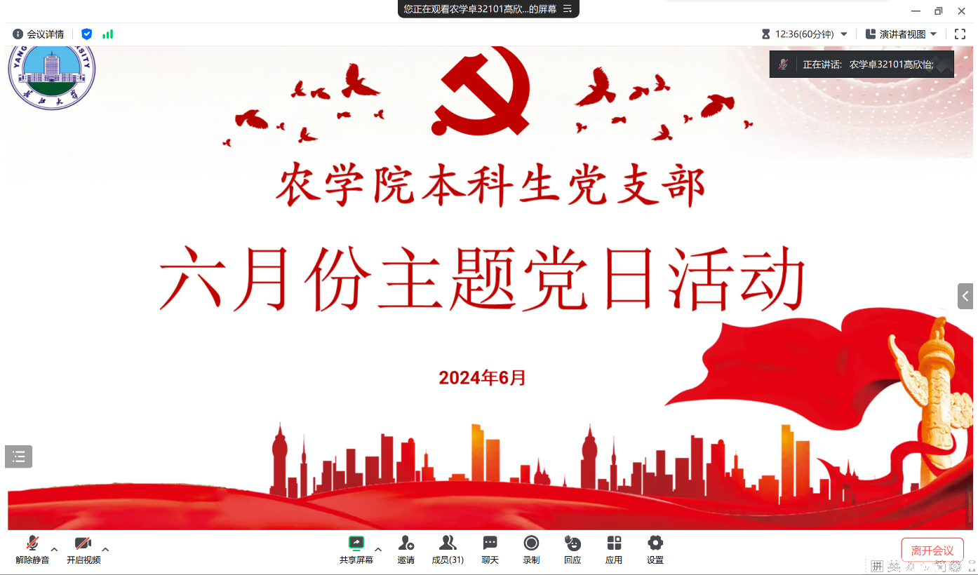 (通讯员 李雅倩)6月18日20:00,公司本科生党支部在腾讯会议211-932-730开展六月份支部主题党日活动,支部全体党员参会。活动由支部副书记高欣怡主持。