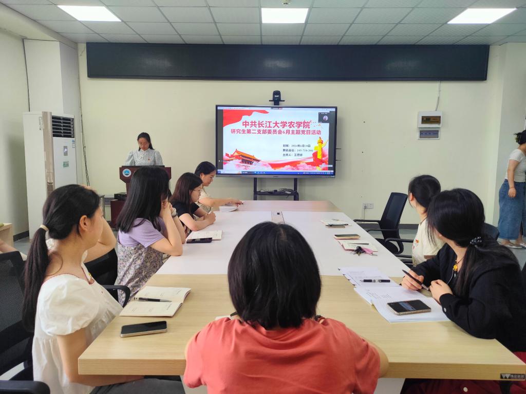 (通讯员 宋梦圆)6月18日,公司研究生第二党支部在农科大楼3071开展六月份主题党日活动,活动结合腾讯会议(ID:105 710 306)的方式同时在线上召开。全体在公司党员和校外联培党员共同参与,活动由王思婷同志主持。