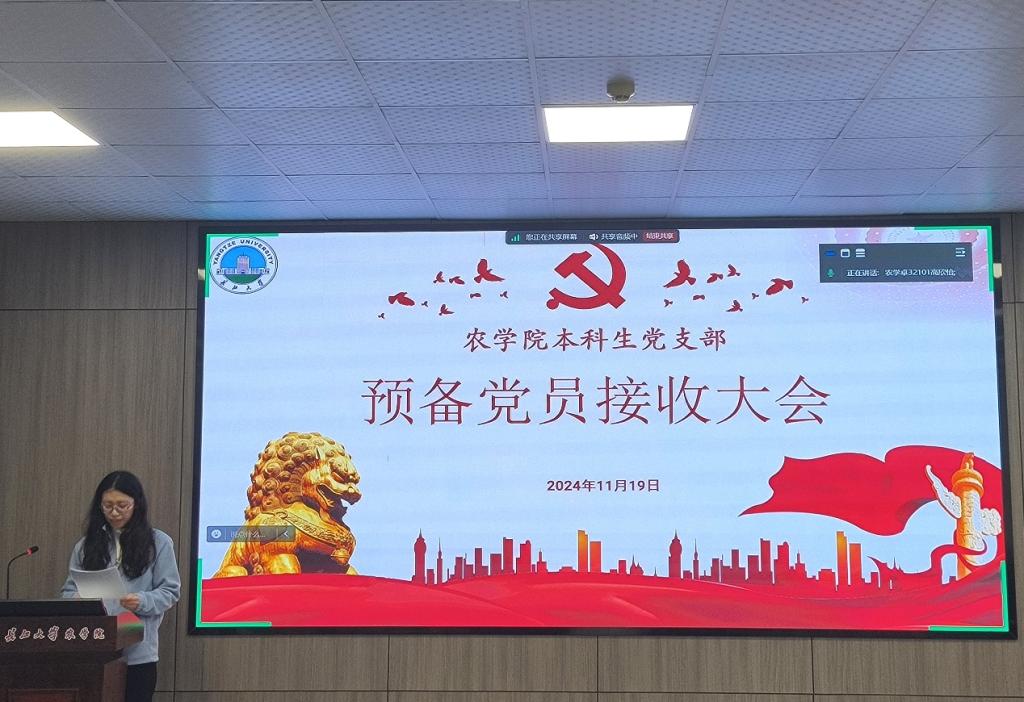 (通讯员 武芊睿)为发展壮大党员队伍,充实党的新生力量,11月19日,beat365亚洲体育官方网站本科生党支部在农科大楼3073召开2024年下半年预备党员接收大会,活动以线上线下相结合的方式开展,讨论发展对象张旭阳等9名同志的入党问题。应到会党员27名,实到会20名,应到会有表决权的正式党员9人,实到会7名,超过半数,符合党员发展流程。会议由支部副书记高欣怡同志主持。