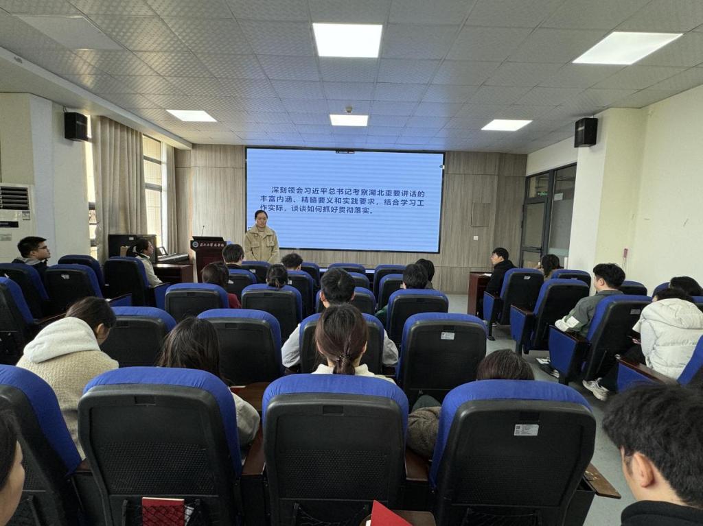 随后,党员冯华华、姜心清、甘娟、黄天宇同志领学党的创新理论。全体党员以“深刻领会习近平总书记考察湖北重要讲话的丰富内涵、精髓要义和实践要求,结合学习工作实际,谈谈如何抓好贯彻落实”为主题展开讨论。袁琨航同志认为,新时代青年要勇抓机遇,充分利用自己的才能和专业知识,将理论与实际相结合,在实践中解决问题,把论文写在祖国大地。陈艳杰同志认为,青年要在科研工作中,勇于创新、敢于担当,积极践行全会精神,培养创新思维和能力,敢于突破传统观念和思维定式。