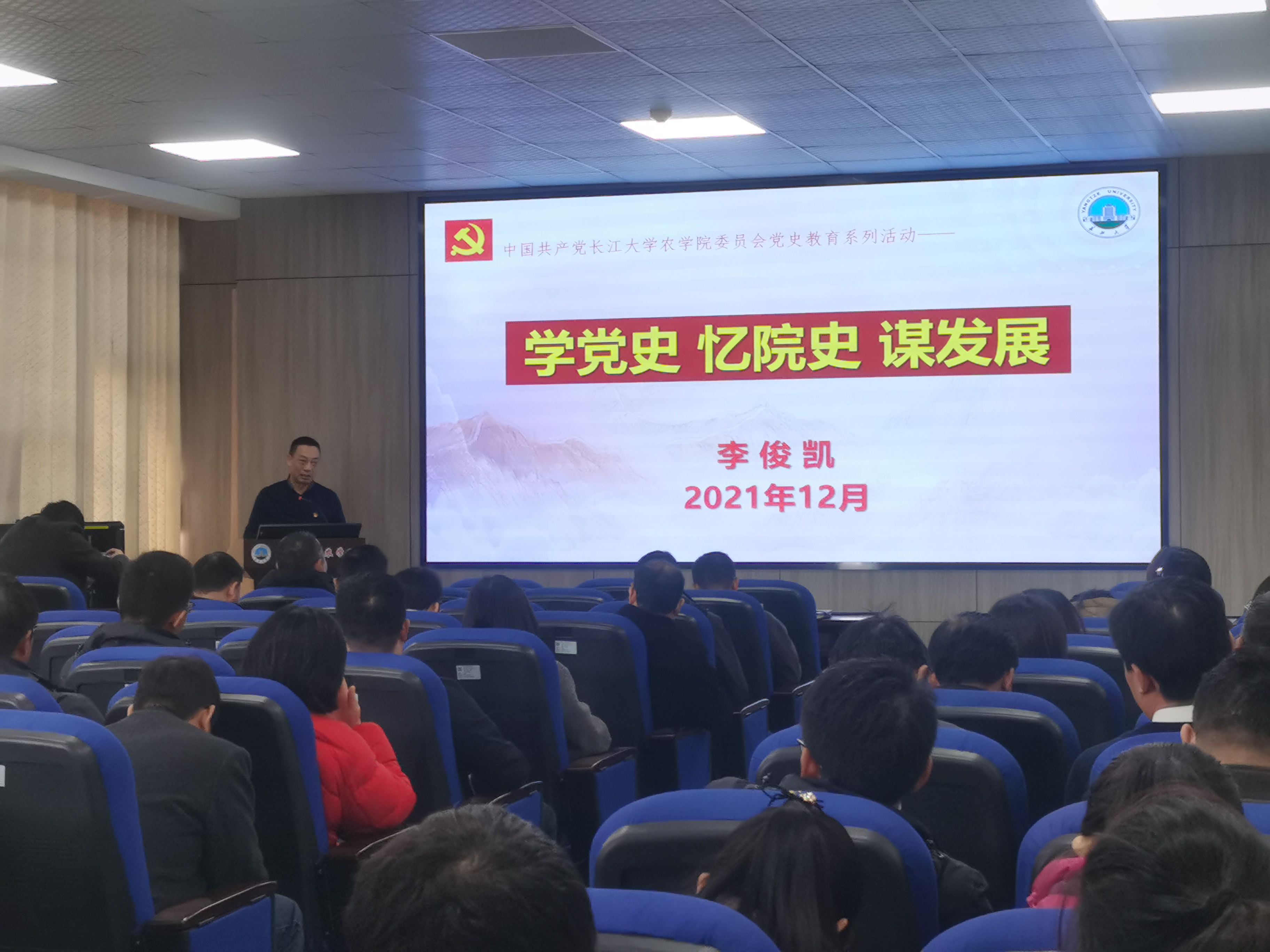 12月2日下午,在农科大楼3073会议室,beat365亚洲体育官方网站经理李俊凯以《学党史 忆院史 谋发展》为题,为全院教职工上了一堂生动的党课。