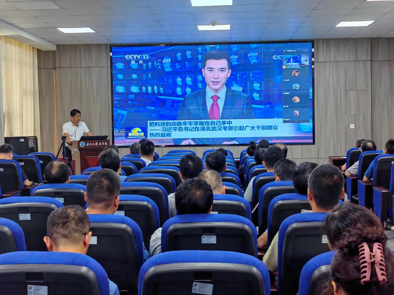 在农科大楼3073会议室,与会人员以观看新闻视频的方式,集体学习了习近平总书记6月28日在湖北武汉考察时的重要讲话精神。