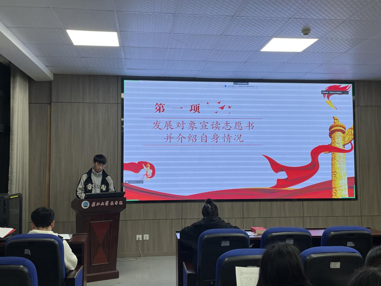 (通讯员 徐志鹏)为进一步加强党员队伍建设,壮大党员队伍,11月24日18:00,公司本科生党支部在农科大楼3073开展2023年下半年预备党员转正大会,活动以线上线下相结合的方式开展,支部党员应到34人,实到33人,应到具有表决权的正式党员14人,实到13人,超过半数,符合党员发展流程。会议由支部副书记姜月兴同志主持。
