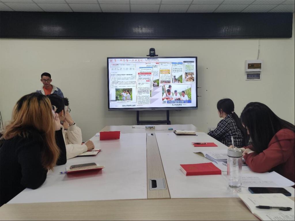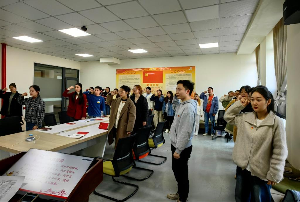 会议伊始,宋梦圆同志带领全体党员重温入党誓词,韩晓文同志对本月党费缴纳情况进行了说明,全体党员诵读《中国共产党章程<修正案>》第九章相关内容。随后进入党课(微党课)与集体学习党的创新理论环节,由麻朝兰同志讲授党课《高举中国特色社会主义伟大旗帜为全面建设社会主义现代化国家而团结奋斗》、简渝丹同志讲授微党课《中国共产党光辉历程》;严晓羽、李可可同志带领学习《习近平总书记在中共中央政治局第九次集体学习时强调 铸牢中华民族共同体意识 推进新时代党的民族工作高质量发展》、《<求是>杂志发表习近平总书记重要文章<开辟马克思主义中国化时代化新境界>》;周停、黄婷同志带领学习《中国共产党支部工作条例(试行)》第四章至第八章、学习习近平总书记致欧美同学会成立110周年的贺信(全文),最后由马发兵同志分享个人先进事迹。