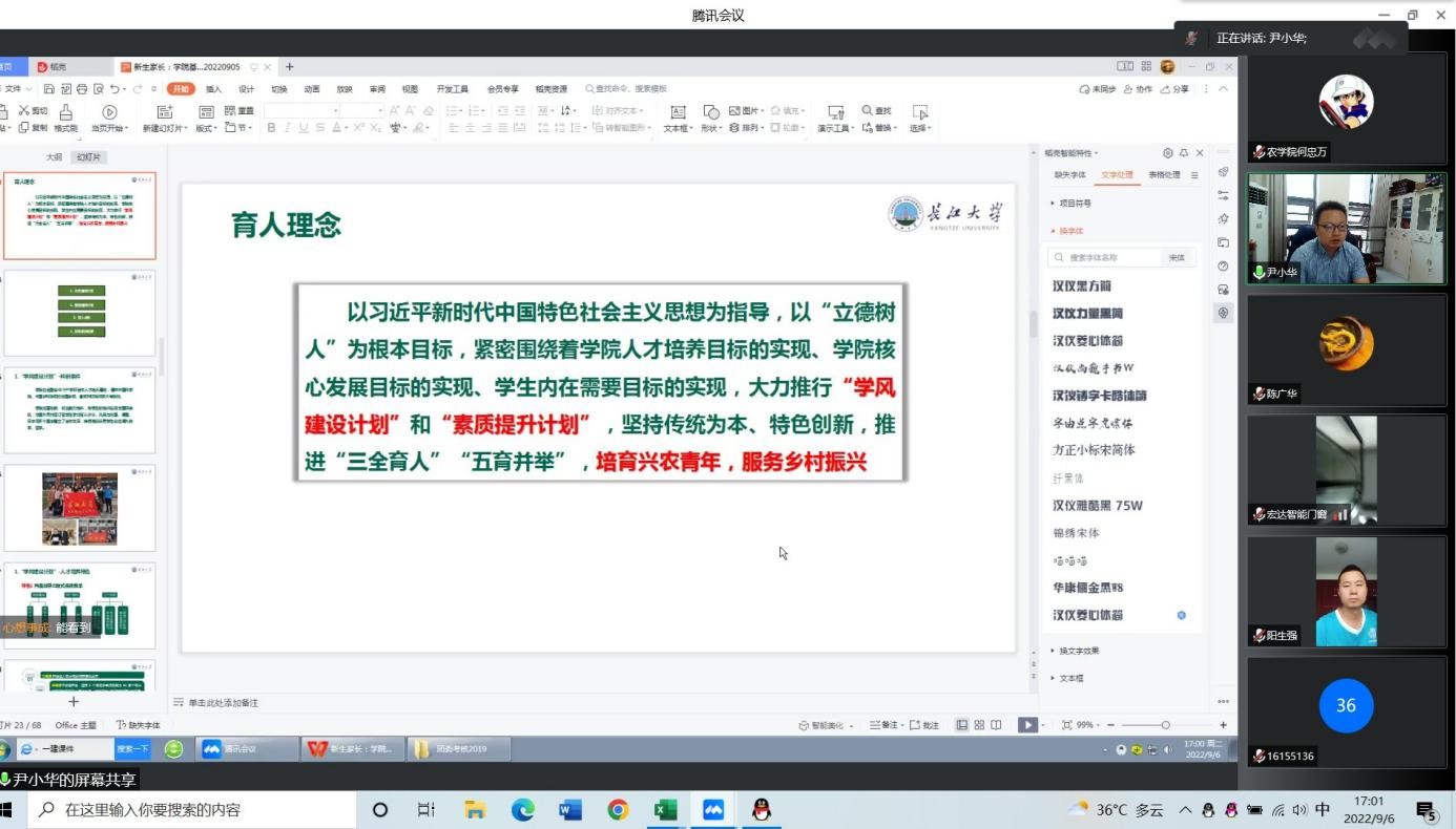 (通讯员 夏应翔)为促进家长和2022级新生更加深入了解大学学习和生活,明确员工在校的发展规划,加强家校联动,9月6日下午,公司在线上召开了2022级新生线上家长会,经理李俊凯、党委副书记尹小华、新生班主任、新生辅导员等参加了会议。