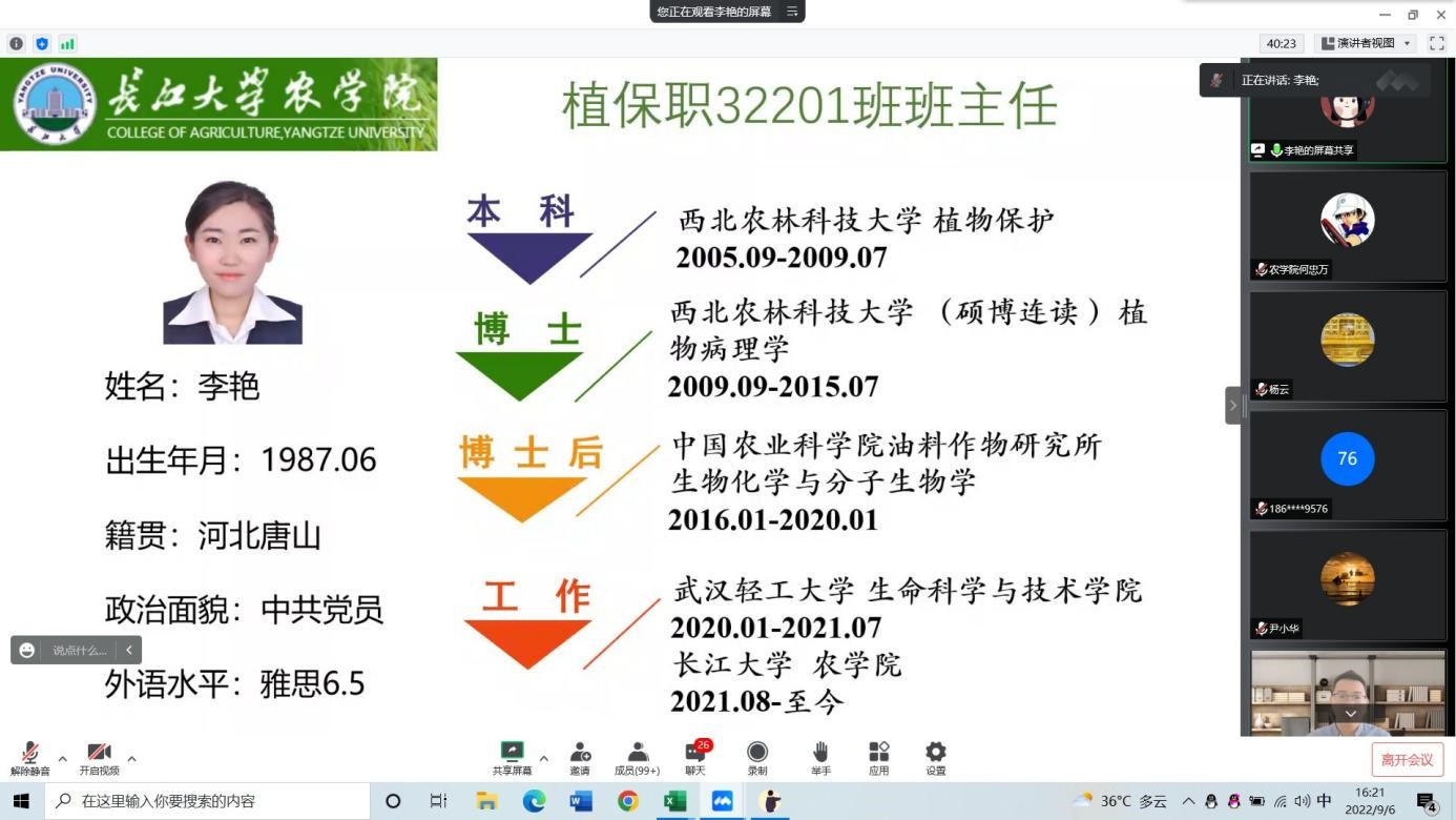 随后,各位新生班主任介绍了自己的求学经历以及学术成果,向家长们表达了自己要带好、能带好2022级新生的坚定信心。